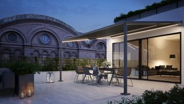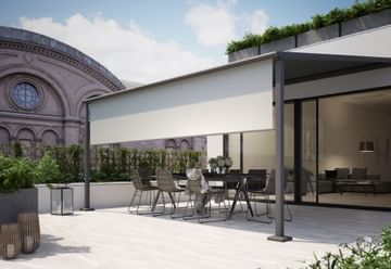 The Pergola Compact Awning from Markilux offers most of the benefits of the larger Pergola product. Using a smaller headbox and side guides, the Compact Pergola can still cover a huge 18sq.m but offers a cost saving over it's bigger brother.