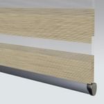 The Beam Maple Mirage Blind is a warm-toned neutral colourway with a metallic shimmer. This cream and gold fabric colourway offers wide stripes of opaque fabric with a striped woven thread design. These panels sit in contrast with the white transparent mesh stripes with a woven-silk-inspired shimmer. The ideal glamorous choice for a traditional interior.