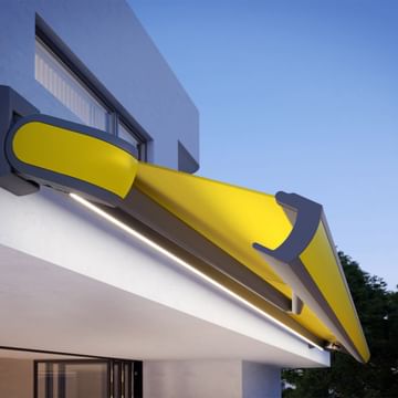 For optional lighting, choose from either an LED strip or LED spotlights underneath the case. The lights are remote-controlled and include a dimmer function, meaning you can adjust the light to set the mood in your garden. You can also add our Safety Pack 1 to your MX-3 awning, which includes a wind sensor that automatically retracts electrically operated models when the wind gets to a level that is likely to damage your awning.