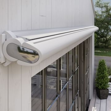The 990 is electrically operated as standard although manual operation is an option. Electrically operated models can add the option of our Safety Pack 1 or Safety Pack 2. Safety Pack 1 adds a wind sensor to the awning that automatically retracts the awning if the wind gets to a level that is likely to damage the blind. Safety Pack 2 includes the wind sensor but adds a manual override feature that allows you to operate the awning in the event of a power failure.