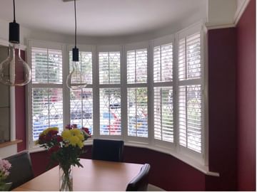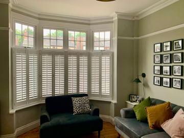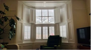 This is where shutters really offer a near perfect blend of form and function. Form – they look stunning, and the especially made to measure frame follows your bay meaning no gaps. Function – the panels or ‘doors’ can be opened to allow access to open or clean the windows, and the louvres can be adjusted to give obscured views during the day and total privacy at night.