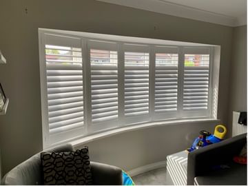 This is another bow or curved style window, but with a more traditional style of shutter fitted.