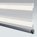 The Lustre Mirage collection is available in 3 beautiful neutral colourways. This unique and bold fabric choice is versatile and adaptable to your needs. The unique dual-panel design allows you to take control of the light and privacy in your home by sliding the fabric to conceal the transparent panels. This is a modern and sophisticated blind system.