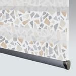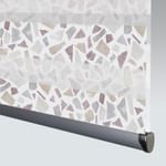 The Terrazzo Burgundy Mirage Blind is a warm-toned colourway with a pure white background. The terrazzo pattern contains bold pops of deep red, grey and beige to create a stunning full-coverage pattern. The classic broken tile print is rustic and modern, the ideal choice for a family room with warm colours and a rustic aesthetic.